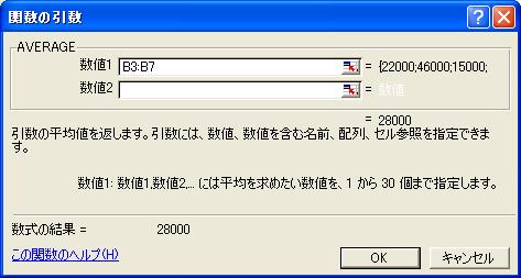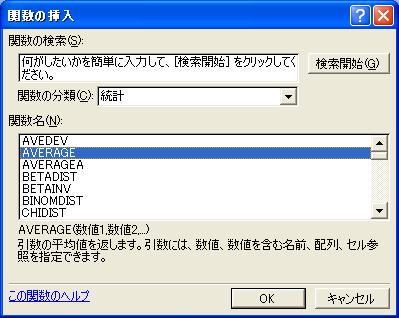 <AVAREGE>のダイアログボックスに戻ります。