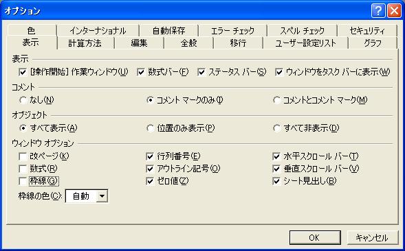 ワークシートの枠線の非表示化