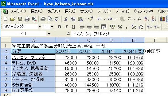 3. 表の計算[ページTOPへ戻る]